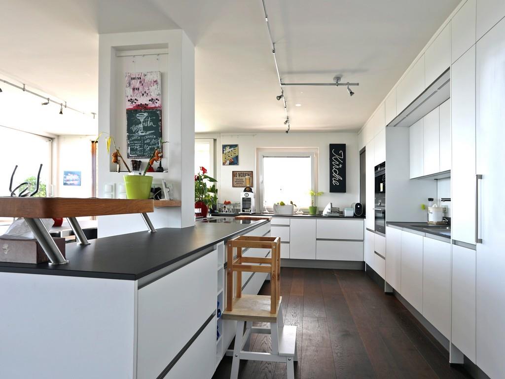 – Küche zum Wohnraum geöffnet und neue Einbauküche mit hochwertigen elektrischen Geräten (z.B. Weinkühlschrank, Eis- und Wasserspender am Gefrierschrank etc.)