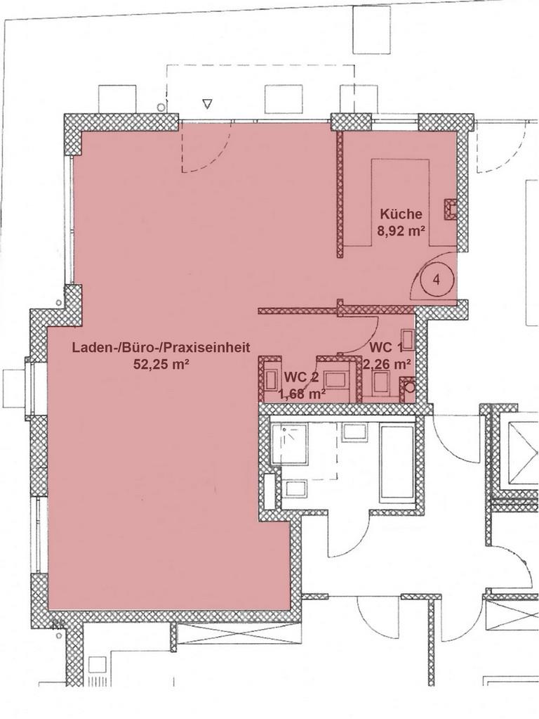 Die Einheit liegt im Erdgeschoss, verfügt über ein langen lichtdurchfluteten Raum und umfasst 65,11 m². Die großen Fensterflächen im Eingangsbereich bieten Ihnen die ideale Möglichkeit Ihre Produkte, Waren oder auch Dienstleistungen bestens zu repräsentieren.