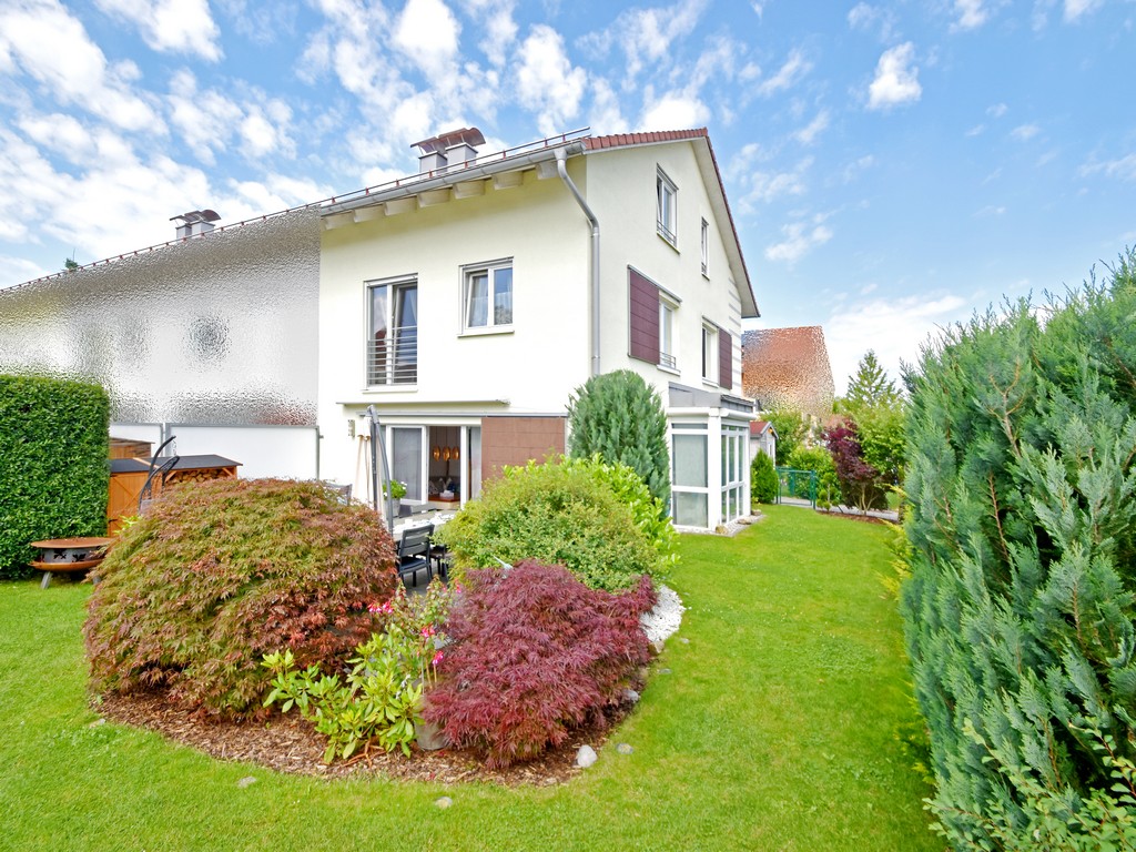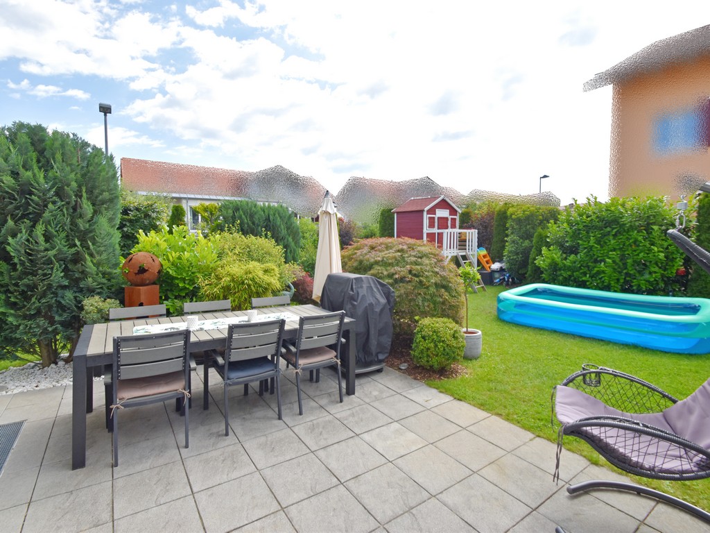Die Terrasse mit dem schönen gepflegten Garten bietet Möglichkeiten als Spielwiese, für Blumen- und Kräuterbeete, zum Sonnenbad oder zur Grillparty.