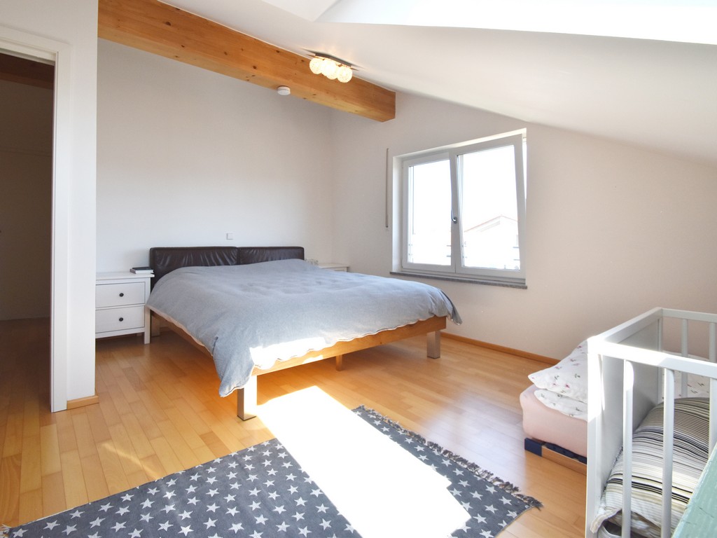 Im Dachgeschoss ist viel Platz für ein Büro oder Gästezimmer. Angrenzend befindet sich ein Ankleide- bzw. Stauraum. Neben einem Duschbadezimmer bietet ein Abstellraum mit ca. 5 m² nochmals Staufläche.