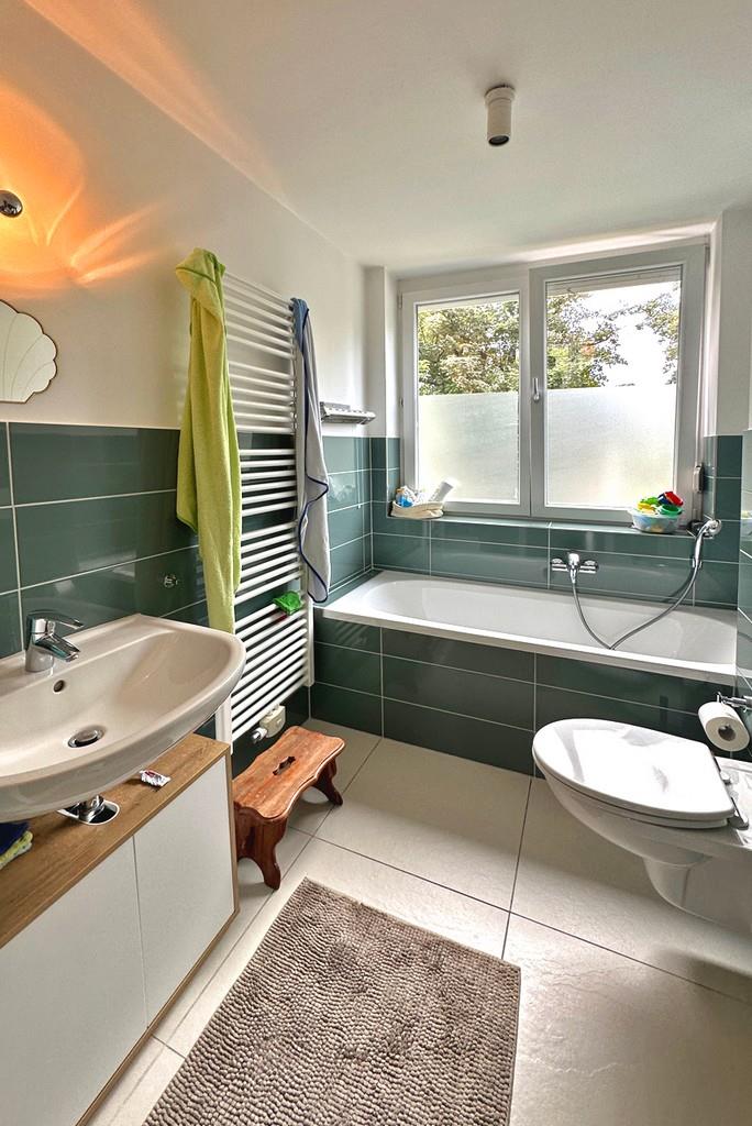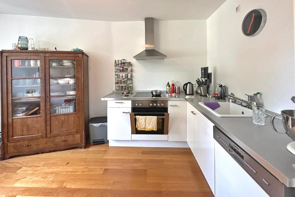 Über den großzügigen Flur erreichen Sie alle Zimmer der Wohnung. Richtung Westen erstreckt sich die Wohnküche, ein modernisiertes Tageslicht-Badezimmer mit Wanne sowie eines der Zimmer. Die vollausgestattete Einbauküche mit jeglichen Elektrogeräten kann von den Vormietern abgelöst werden. Die Wohnung verfügt noch über ein weiteres Badezimmer mit Dusche, zusätzlichem Bidet sowie Waschmaschinen- und Trockneranschluss.