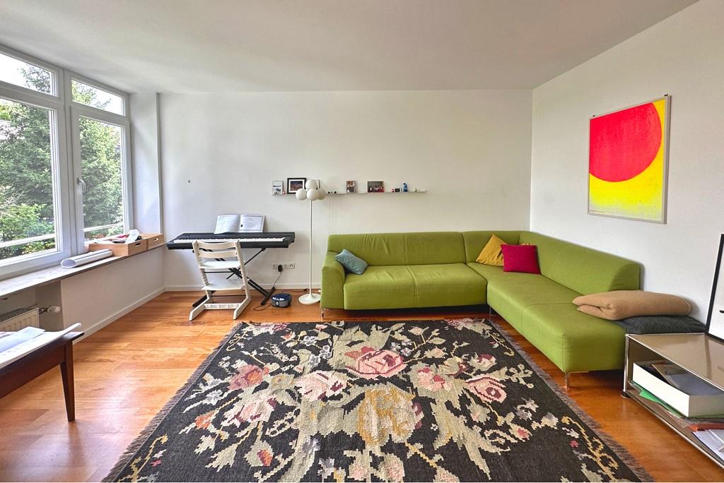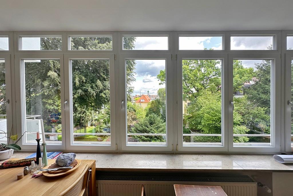 Gen Osten erstreckt sich das großzügige Wohnzimmer. Dank der durchgezogenen Fensterfront mit charmantem Weitblick über die Innenhöfe Nymphenburgs ist der Raum von morgens bis nachmittags lichterfüllt. Das zweite Schlafzimmer richtet sich ebenfalls nach Osten. Vom Wohnzimmer wie auch vom zweiten Schlafzimmer aus gelangen Sie auf die windstille Ost-Loggia/Balkon, die viel Platz bietet um warme Sommerabende zu genießen.
