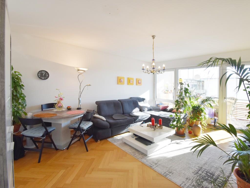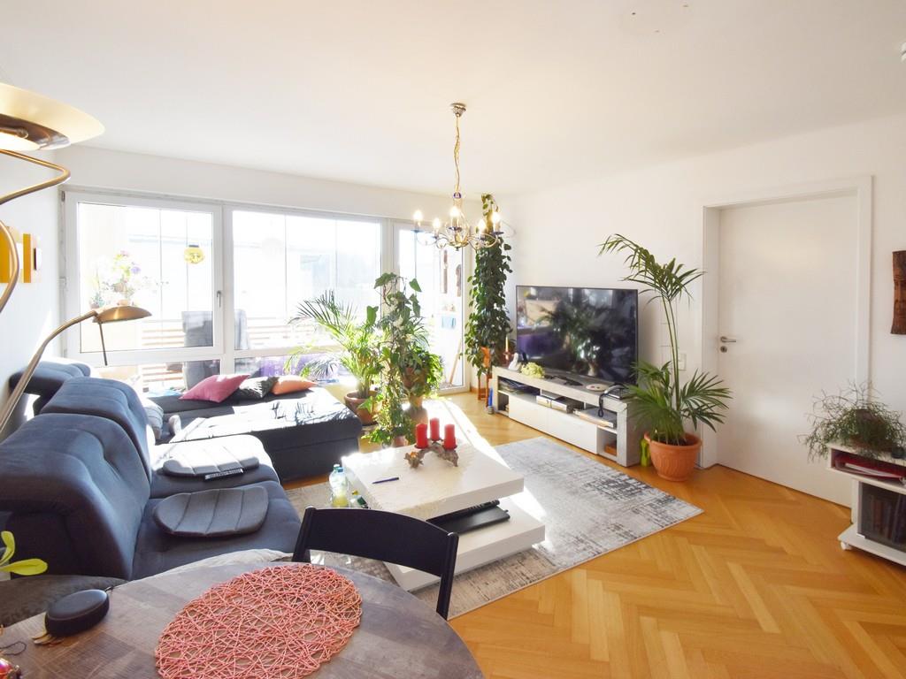 In der Wohnung angekommen gelangt man über die geräumige Diele in das großzügige Badezimmer mit großer Dusche und Waschmaschinenanschluss. Von der Diele aus ist ebenfalls das lichtdurchflutete Wohnzimmer zu erreichen, von welchem man Zutritt auf die große südlich ausgerichtete Loggia hat. Die Loggia ist zudem mit einer beweglichen Glasfassade ausgestattet und bietet dem Bewohner von Frühling bis Herbst eine Erweiterung des Wohnzimmers. Das an das Wohnzimmer angrenzende Schlafzimmer ist ebenfalls sehr hell und bietet ausreichend Platz für ein Doppelbett und einen großen Schrank. In der hellen Einbauküche finden wir alle Elektrogeräte für den täglichen Gebrauch. Die Küche und der Flur wurden mit Terracottafliesen ausgestattet und in der restlichen Wohnung finden wir einen hochwertigen Fischgrät-Parkett. Das Badezimmer ist in einem freundlichen Weiß gefliest. Weiterhin ist der Wohnung ein Kellerabteil zugeordnet.