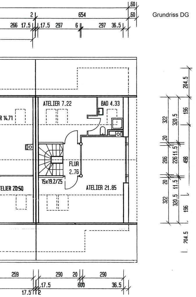Im Dachgeschoss befinden sich ein weiteres großes Zimmer mit ca. 22 m² und ein zusätzlicher Raum, an welchen ein Badezimmer mit Dusche angrenzt.