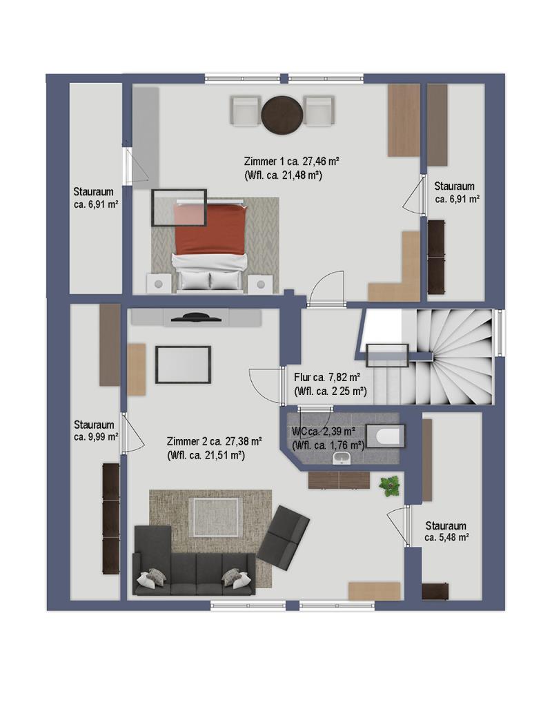DG: WC, 2 Zimmer, Flur, Speicher