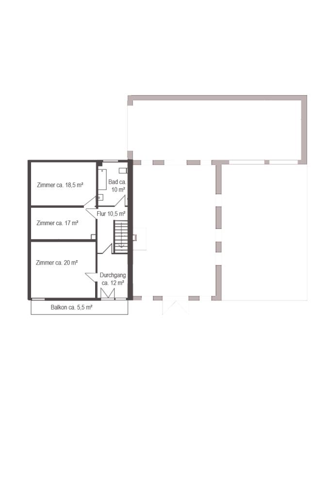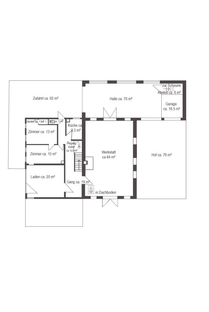 – den “ehemaligen Wohnteil” mit kleiner Ladeneinheit im Westen,