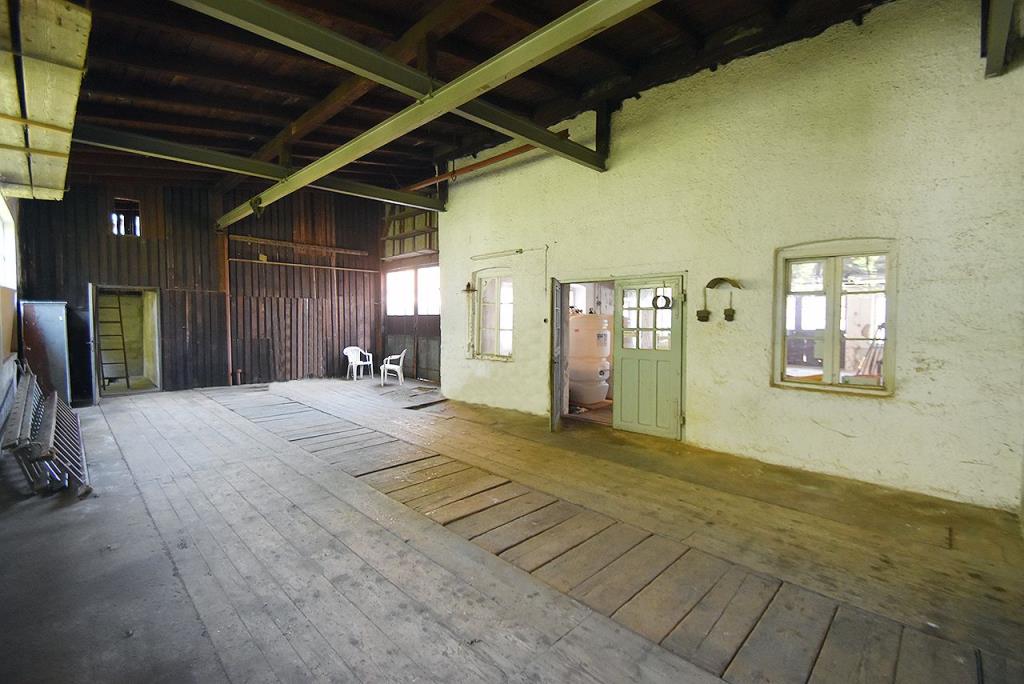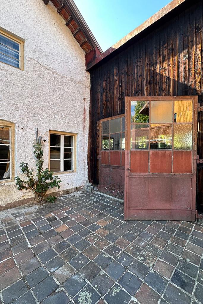 Die Werkstatt, welche im Laufe der Jahre umfunktioniert wurde zur Schmiede, ist ein wahres Highlight. Fensteröffnungen bestehen auf drei Seiten des Raumes und das zweiflügelige Tor in der Südwand zeigt Merkmale des Ausbaus zur Schmiede in den 1930er Jahren. Der Boden ist aus Stirnholz in unterschiedlichen Formaten. Der Raum ist ein wahres Schmuckstück und kann mit seiner offenen Feuerstelle in vielerlei Hinsicht umgebaut und genutzt werden. Angrenzend an die Werkstatt befindet sich ein nach Süden ausgerichteter Hof.