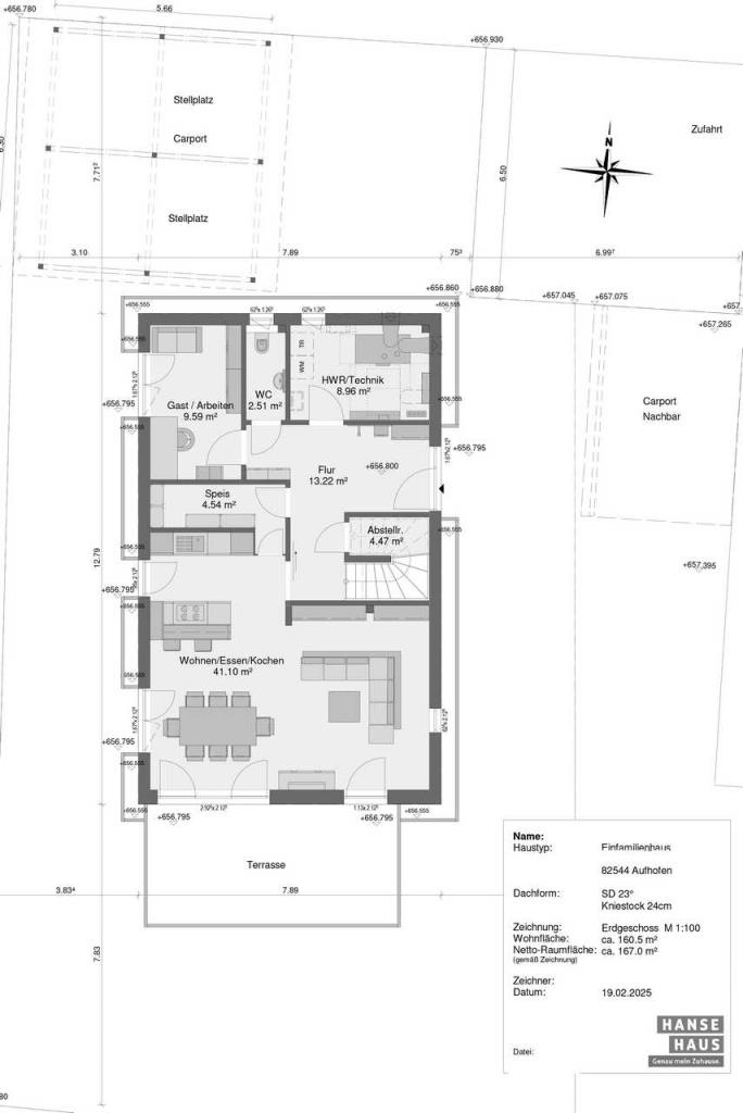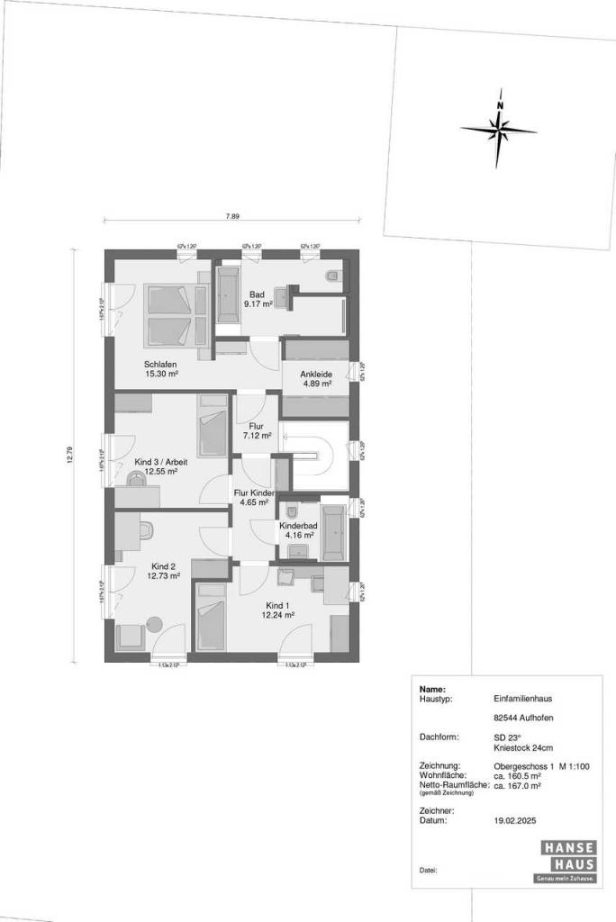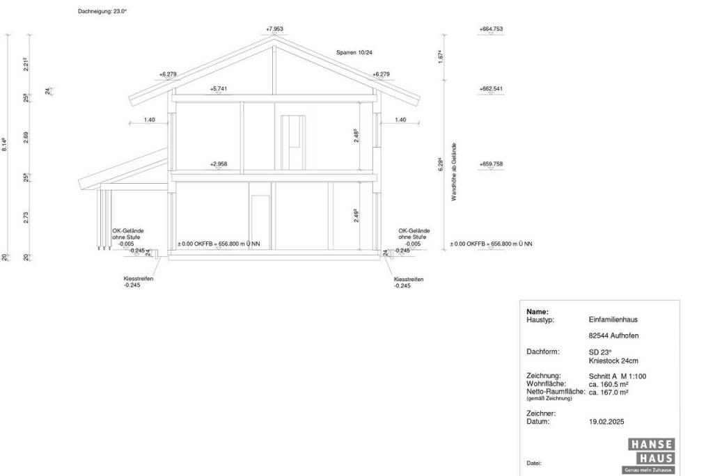 Für das Grundstück wurde bereits eine Baugenehmigung für die Bebauung mit einem Einfamilienhaus erteilt. Somit können Sie mit dem Bau sofort beginnen. Die Entwurfsplanung wurde von der renommierten und deutschlandweit bekannten Fertighausfirma “Hanse Haus” entworfen (https://www.hanse-haus.de). Bei weiterem Interesse zur genauen Kostenkalkulation des Fertighauses stehen wir Ihnen sehr gerne zur Verfügung und stellen bei Wunsch auch den direkten Kontakt zu dem Ansprechpartner der Firma Hanse Haus her.