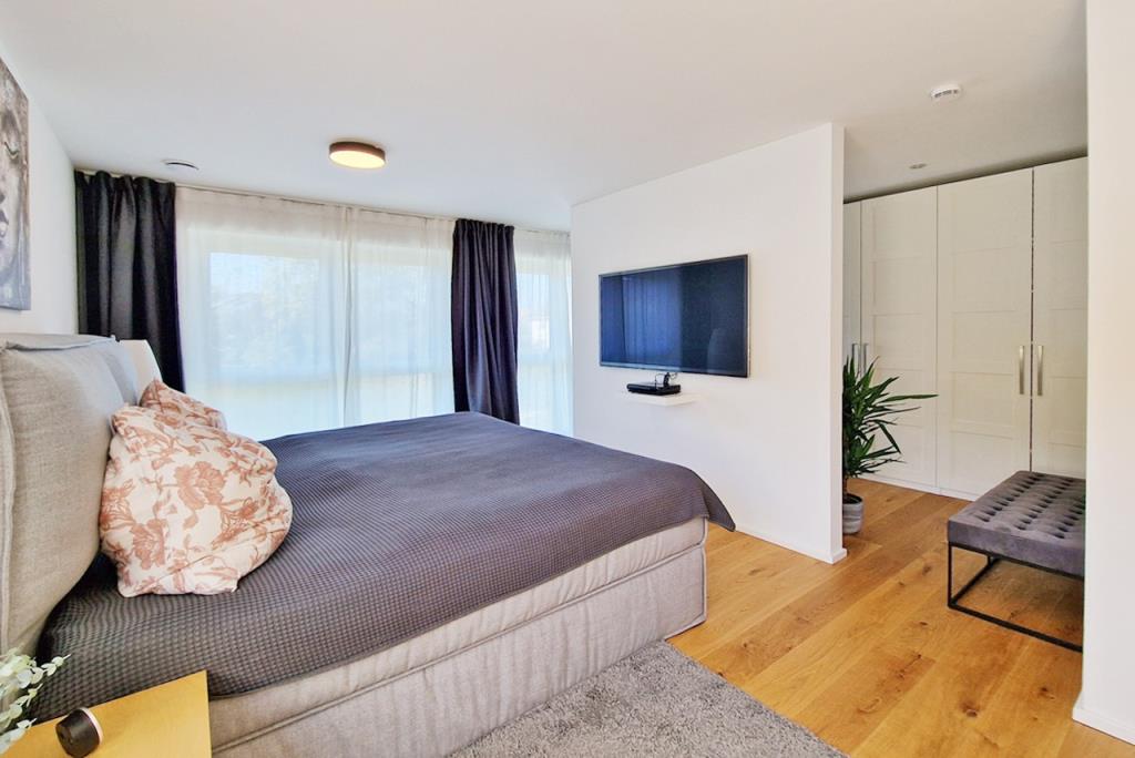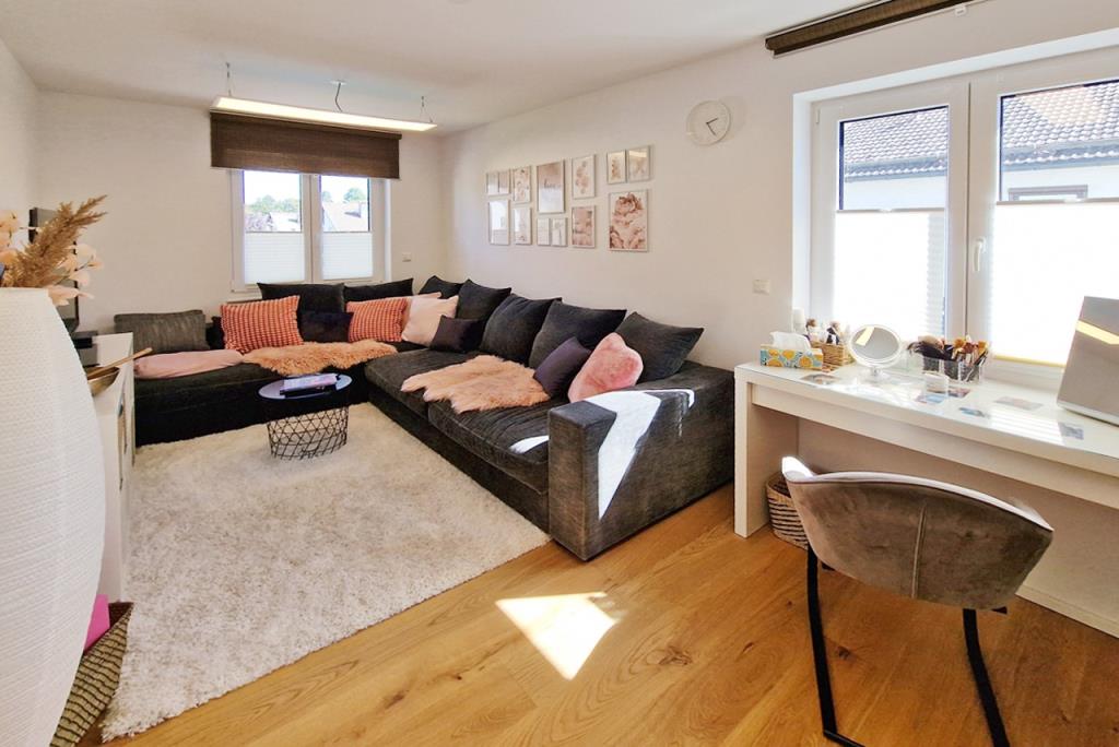 Als weiteres Highlight befindet sich im Untergeschoss noch ein Zimmer mit angrenzendem Bad, welches durch ein großes Doppelfenster mit Abböschung vielseitig genutzt werden kann. Weiterhin befinden sich im Untergeschoss ein Heiz- und Waschraum sowie ein Abstellraum / Garderobe.