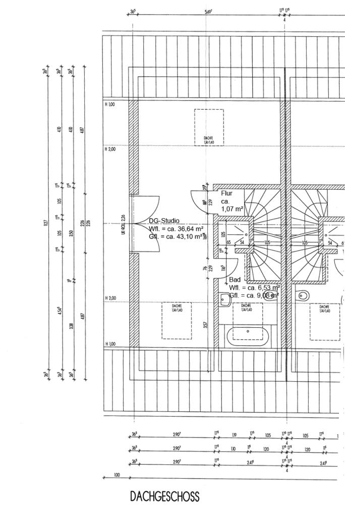 - Raumhöhen: UG, EG & OG: ca. 2,43 m / DG: First ca. 2,83 m