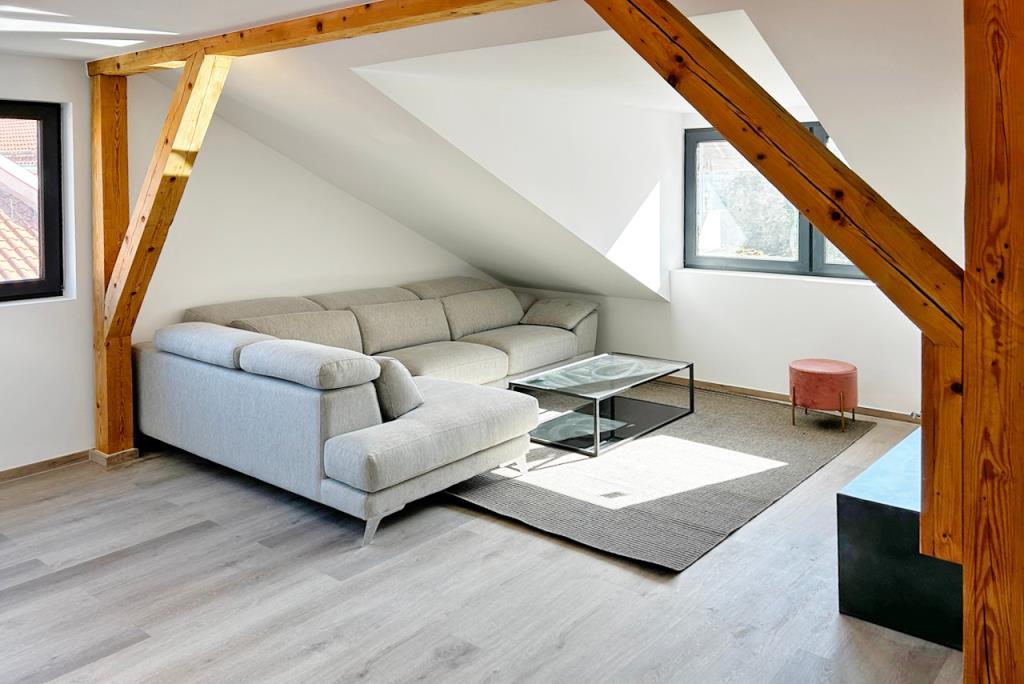 Das Dachgeschoss wurde vollständig zu einem komfortablen Wohnbereich ausgebaut. Die stilvolle Gestaltung und der hochwertige Ausbau mit modernem Badezimmer und vollausgestatteter Küche schaffen eine angenehme Wohnatmosphäre. Weiterhin lädt das große und helle Schlafzimmer mit Balkon und der große Wohn- und Essbereich zum Entspannen und Wohlfühlen ein. Zudem bietet die Wohnung ebenfalls ein Gäste-/Arbeitszimmer und eine Abstellnische.
