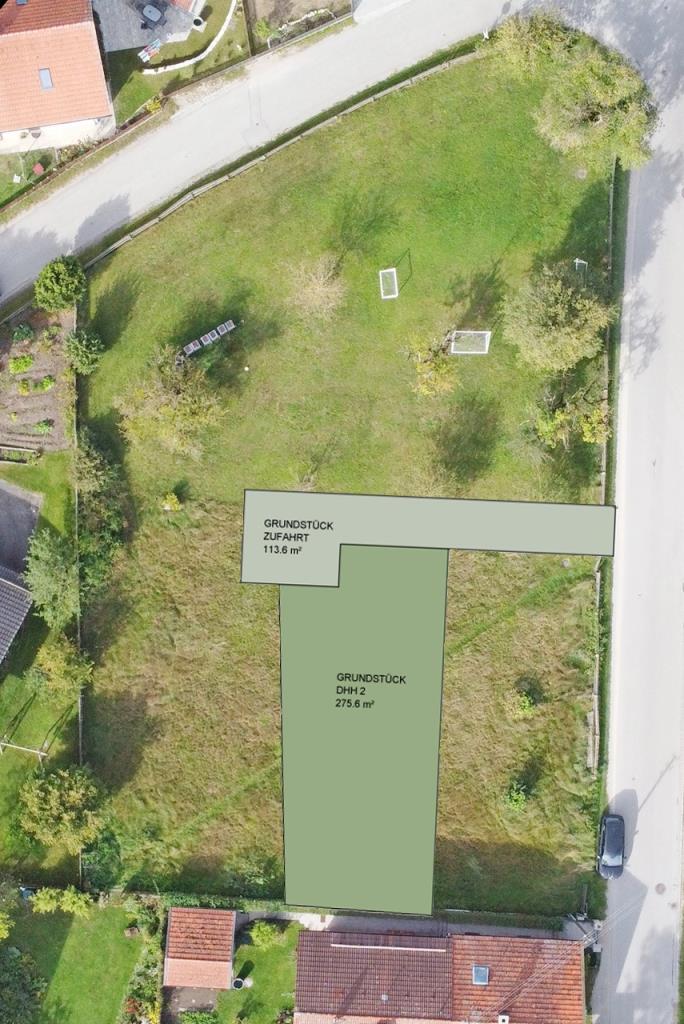 Das gesamte Grundstück wird derzeit real geteilt und die zukünftige Grundstücksgröße für die Doppelhaushälfte 2 (DHH 2) wird ca. 275,6 m² betragen.