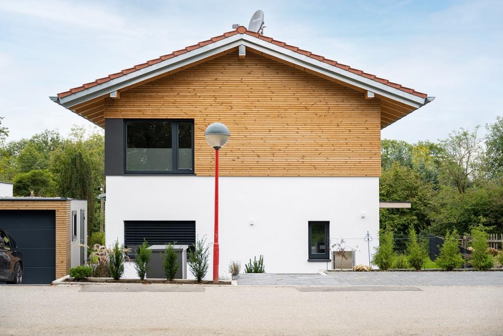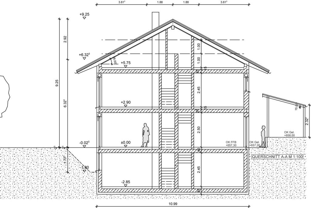 Maße Einfamilienhaus: Länge 10,99 m x Breite 7,63 m x Höhe 6,32 m (Wandhöhe)