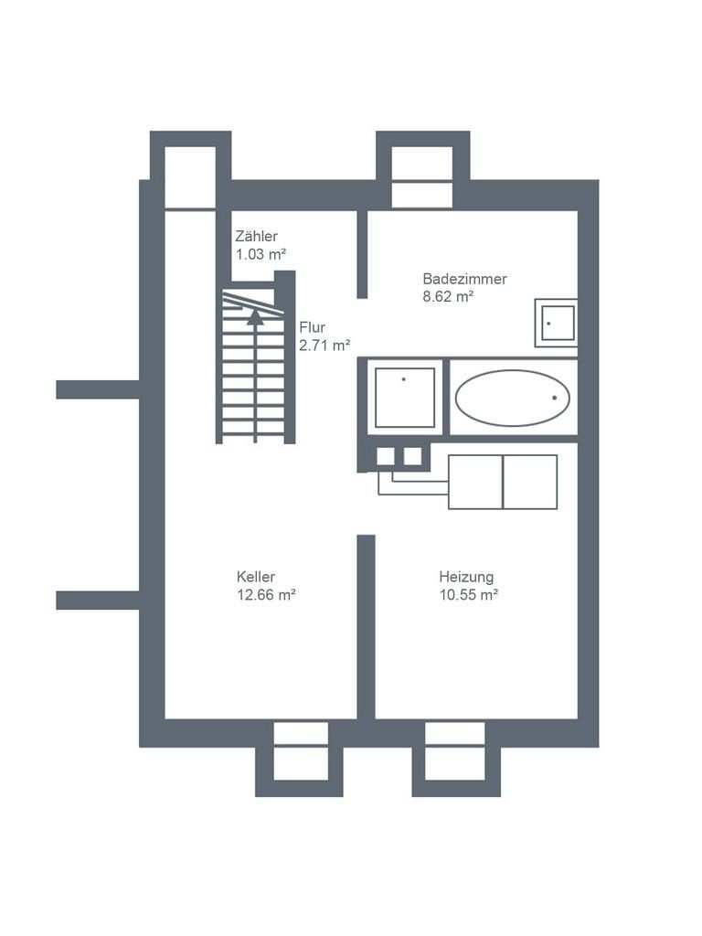 Im Keller befindet sich das Badezimmer des Hauses, ein Heizungs- und ein Keller- bzw. Lagerraum.