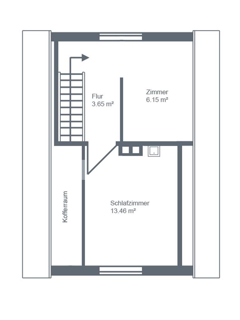 Das Obergeschoss besteht aus einem Schlafzimmer mit einem geräumigen Kofferraum/Speicher und einem kleinen weiteren Raum. Zudem gelangen Sie von hier auch auf den Dachspeicher.