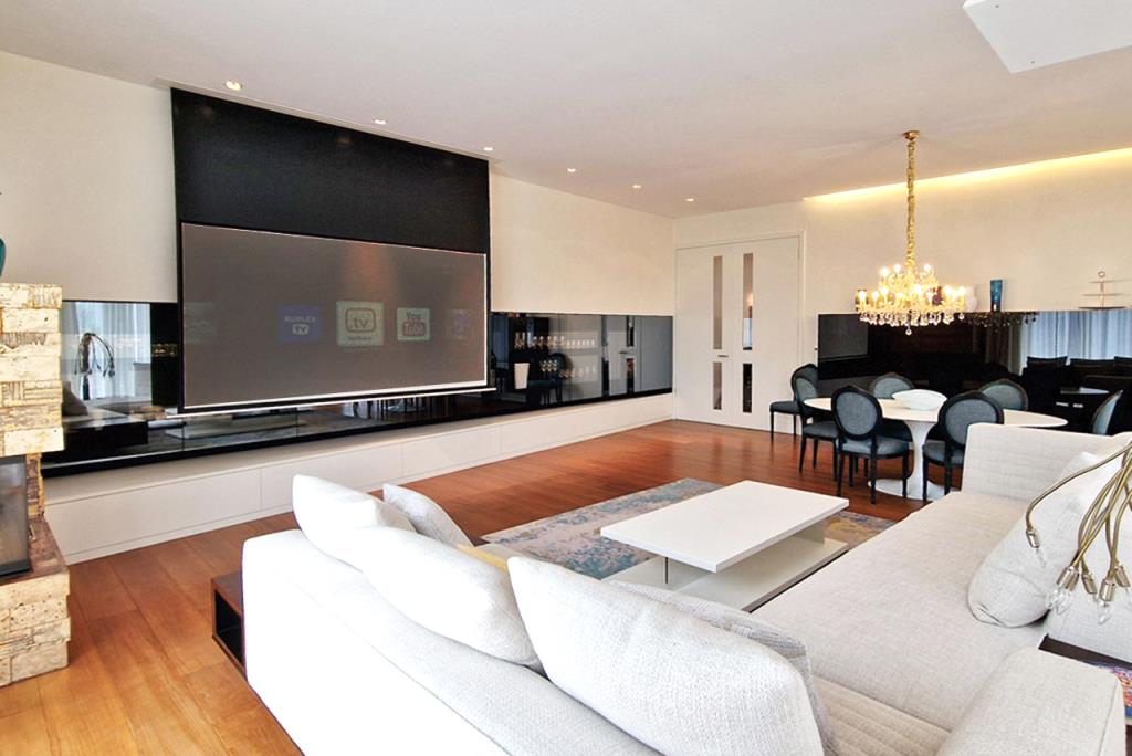 Die Ausstattung wurde auf höchstem Handwerksniveau ausgeführt und hochwertigste Materialien ausgewählt. Eine selektierte Auswahl an renommierten Markeneinbauten, aufwändige Maßeinbauten in fast allen Räumen, Teak-Vollholzdielenparkett, hochwertiger Naturstein und Feinsteinzeug und eine zentrale Staubsaugeranlage verbinden sich zu einem Angebot der Extraklasse. Ein absoluter Eyecatcher ist der von Petra Antiqua mit luxuriösen Fliesen verkleidete und vergoldete Kamin. Ein Heimkino mit in der Decke eingebautem und ausfahrbarem Beamer und großer Leinwand sorgt für das optimale Entertainment. Für höchste Effizienz sorgt die Beheizung mit Erdwärme und Solarenergie.