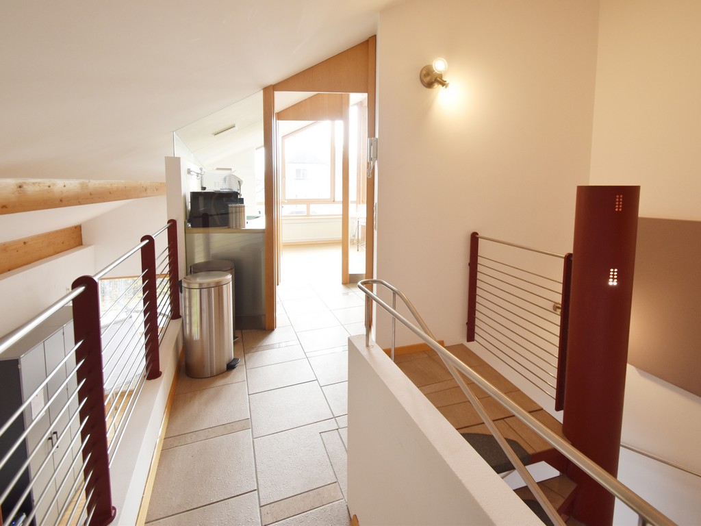 Im Dachgeschoss befinden sich nochmals zwei Zimmer, ein Duschbad und eine kleine Teeküche. Insgesamt überzeugt der Grundriss durch ein offenes Raumkonzept mit außergewöhnlichem Schnitt, eine Galerie und licht- und luftdurchflutete Raffinesse. Das Untergeschoss rundet mit einem Hobbyraum, einem Fitnessraum und Gäste-WC das angenehme Gesamtbild positiv ab.