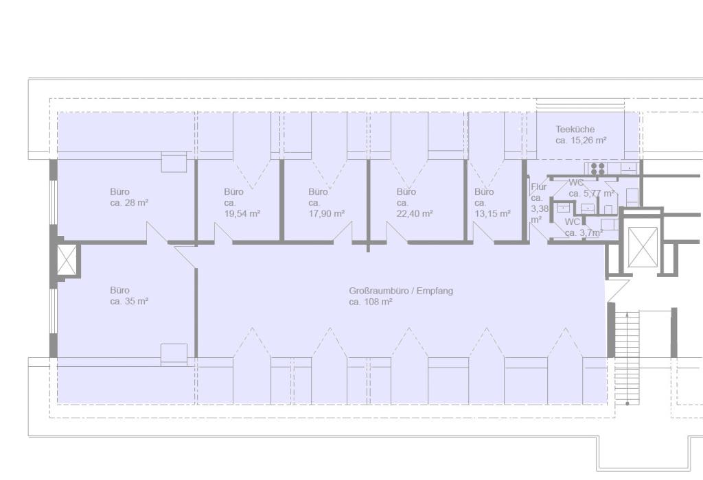 Die hier angebotene attraktive und multifunktionale Bürofläche befindet sich im Gewerbegebiet Taufkirchen / Potzham, welches in wenigen Minuten von der Autobahnausfahrt Oberhaching zu erreichen ist. Die Gewerbeeinheit im Dachgeschoss ist auf 7 großzügige Räume aufgeteilt und umfasst insgesamt ca. 272 m². Zusätzlich befindet sich in der Einheit ein heller Küchenraum und zwei getrennte Toilettenbereiche. Das Bürogebäude ist bereits mit einem Glasfaserkabelanschluss ausgestattet, welcher nach Bedarf in der Einheit verlegt werden kann. Ein Lastenaufzug, eine Rampe zur Anlieferung sowie Außenstellplätze vor dem Gebäude stehen zur Verfügung.